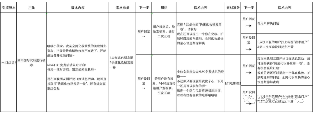 此类客户类似“骗”来的粉丝,用户被大牌低价口红等产品吸引而来,所以通过后第一时间给到用户诱饵,告知对方xx时间进行活动,并迅速引导用户去朋友圈参与当下的活动的内容,破冰流程如下: